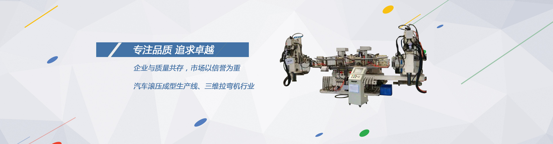 公司主要從事專用設備的研發與生產。專業制造金屬異型材軋輥成型流水線與金屬PVC、TPE等復合擠出成型流水線,三維自動化拉彎機,直線/圓弧伺服跟蹤切斷機。